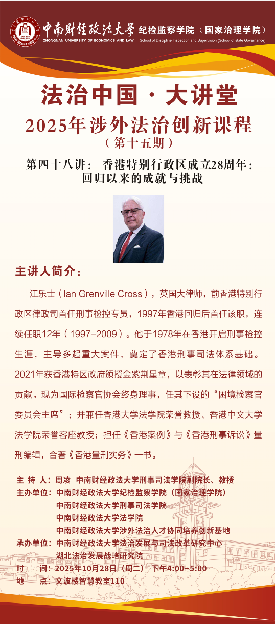 【讲座预告】法治中国•大讲堂|香港特别行政区成立28周年:回归以来的成就与挑战