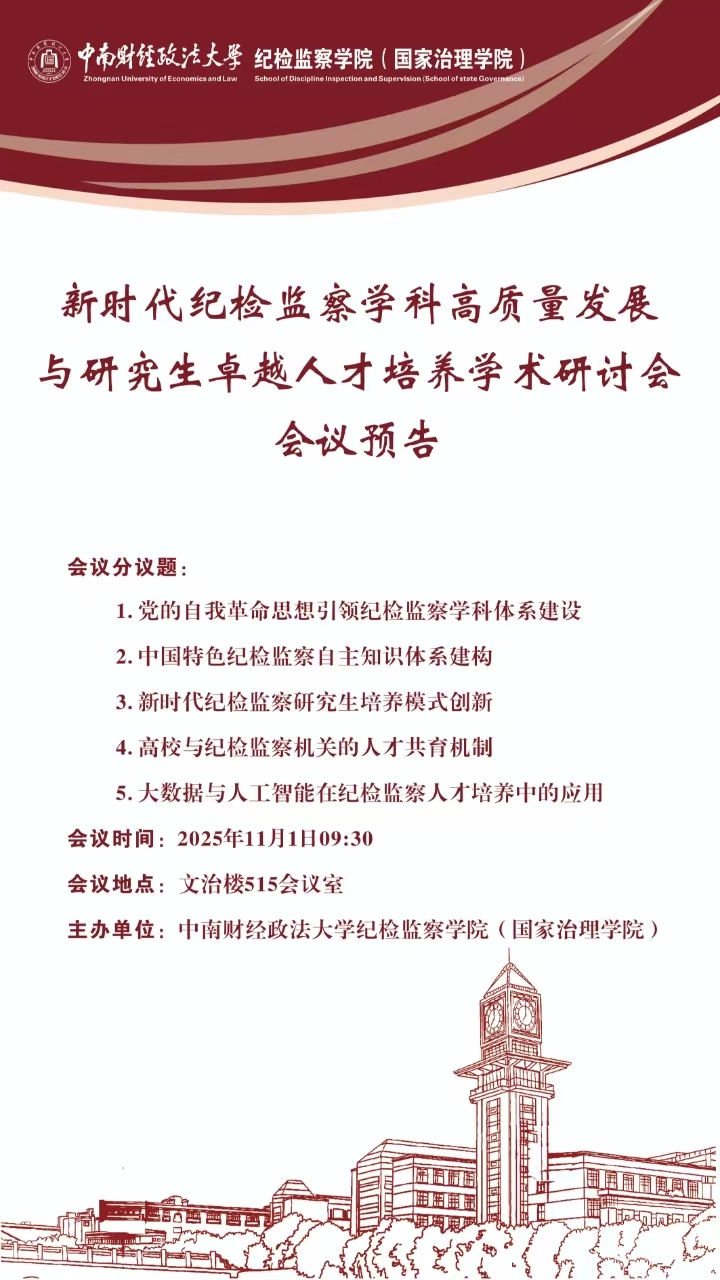【会议预告】新时代纪检监察学科高质量发展与研究生卓越人才培养学术研讨会会议预告