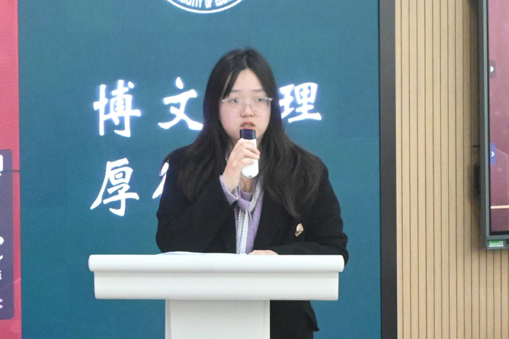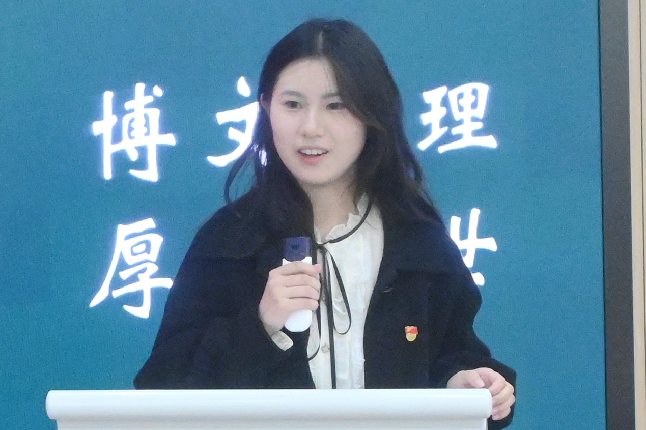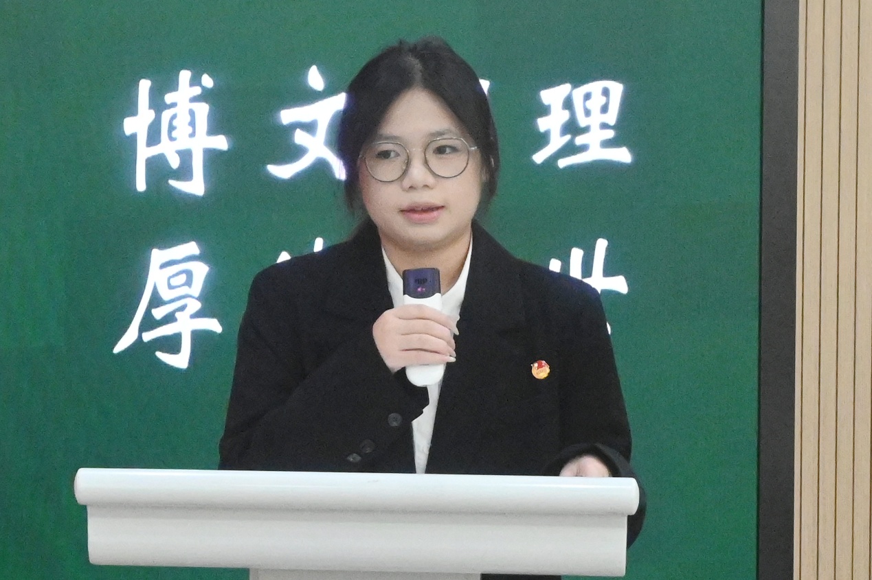 校“希贤学堂”第十八期青年马克思主义者培训班优秀学员陆梅瑜以“在扎根与奉献中淬炼青春本色”为主题分享成长心得,鼓励新学员们珍惜培训机会,锤炼忠诚品格,用青春书写无愧于时代的清澈篇章。