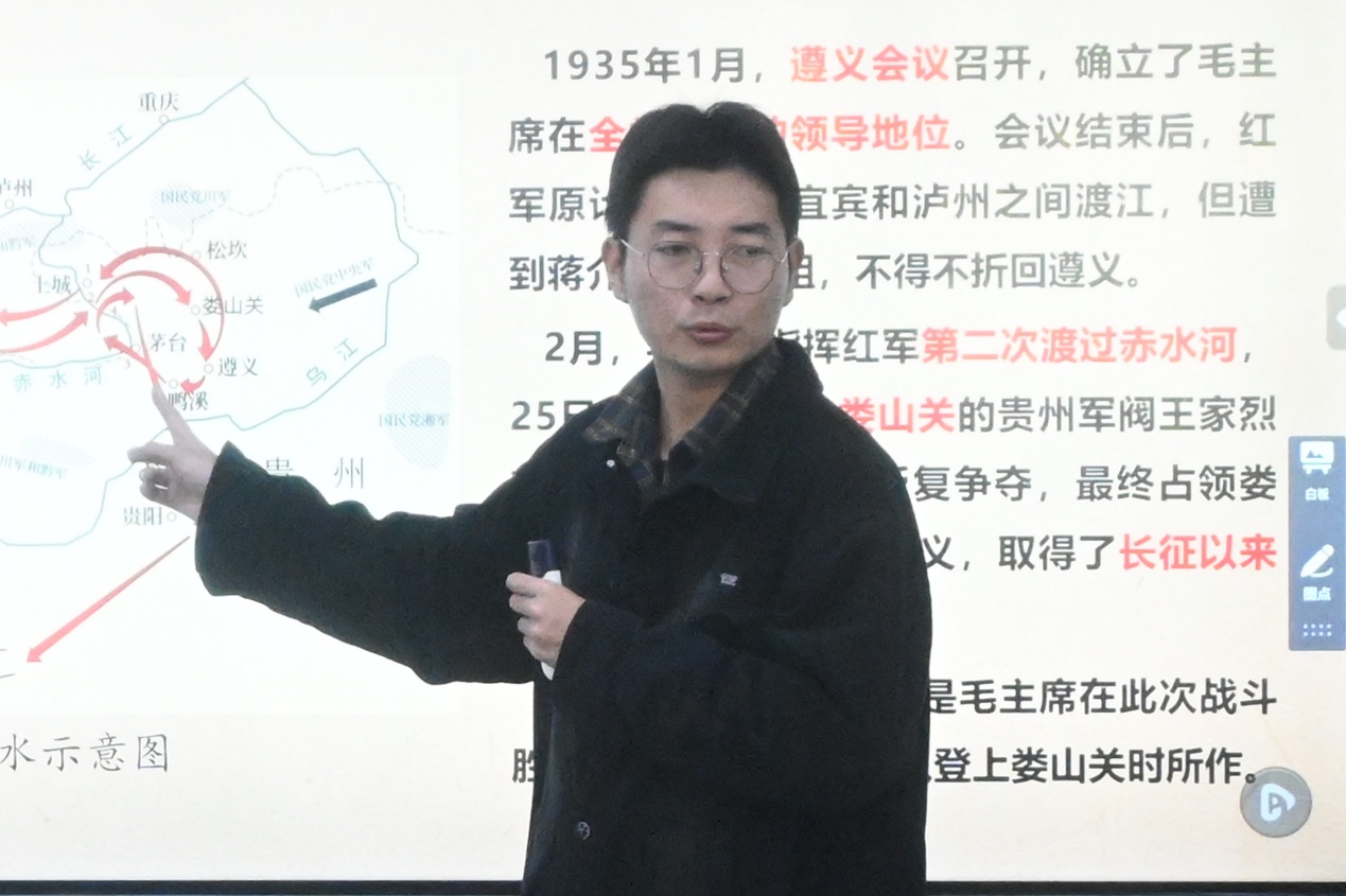 开班仪式结束后,“青马班”、“青苗”团员培训班第一次联合团课随即开展。孙鸿路以“诗墨铸剑:从党史视角解读毛泽东诗词的革命情怀”为题,围绕毛泽东诗词背后的党史故事,结合“怅寥廓,问苍茫大地,谁主沉浮”等经典诗句,生动再现了中国共产党在不同历史时期的奋斗历程,深入解读了毛泽东诗词中蕴含的坚定理想信念、革命豪情与家国情怀。