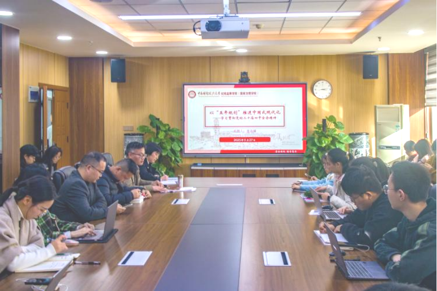 通讯员 周诗琪 王文佑 舒雨诚11月27日下午,纪检监察学院(国家治理学院)文治楼515会议室成功举办学习贯彻党的二十届四中全会精神专题党课。本次党课旨在深学细悟全会精神,筑牢学院师生的思想理论根基。学院师生代表参加学习,党课由学院党委书记袁桂君主持。