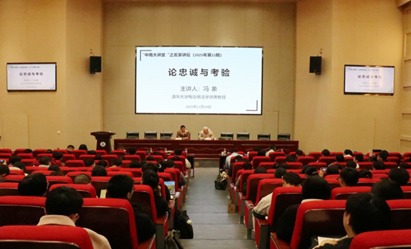 11月29日晚,由中南财经政法大学法学院、纪检监察学院(国家治理学院)、科学研究部和法学学部学术委员会联合举办的“中南大讲堂”之名家讲坛2025年第15期“论忠诚与考验”,在文湛楼(原法科大楼)一楼报告厅顺利举行。本次讲座特邀清华大学法学院梅汝璈法学讲席教授冯象老师担任主讲嘉宾,纪检监察学院(国家治理学院)副院长、教授刘杨担任主持人。