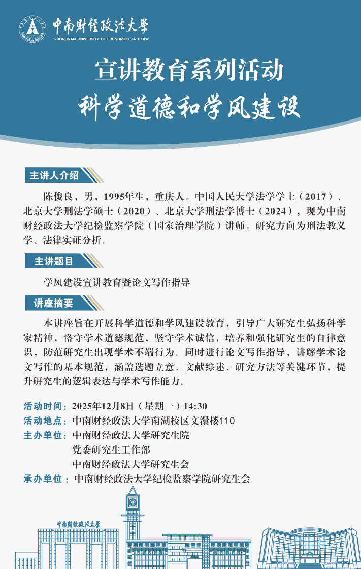 【讲座预告】宣讲教育系列活动——科学道德和学风建设