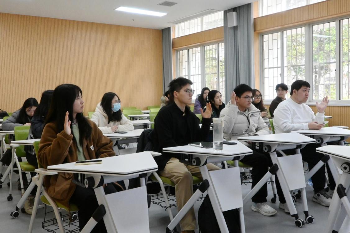 交流会上,同学们结合自身学习实际,围绕专业学习、考研升学、就业方向、人生规划等关键问题踊跃提问、坦诚交流。庞远福老师结合多年教学经验与育人实践,逐一细致解答学生困惑,并从学习方法优化、职业路径选择、专业素养培育、综合素质提升等多个维度开展针对性、前瞻性的成长指导,真正将班导师“一对一”的育人效能落到实处。整场活动历时两个多小时,现场氛围融洽、互动热烈。庞远福老师的耐心解答,有效解开了大家在学习与发展中的诸多疑惑,帮助同学们进一步明确了前行方向与奋斗目标。与会同学纷纷表示,将以更加饱满的热情、更加务实的态度投入学习生活中,努力成长为堪当时代重任的合格人才。活动最后,学院团委书记周诗琪老师作总结发言。她希望同学们以此次交流会为新起点,深耕专业知识,全面提升综合素养;找准人生定位,科学规划学业与人生路径,以脚踏实地的态度走好求学与成长的每一步。